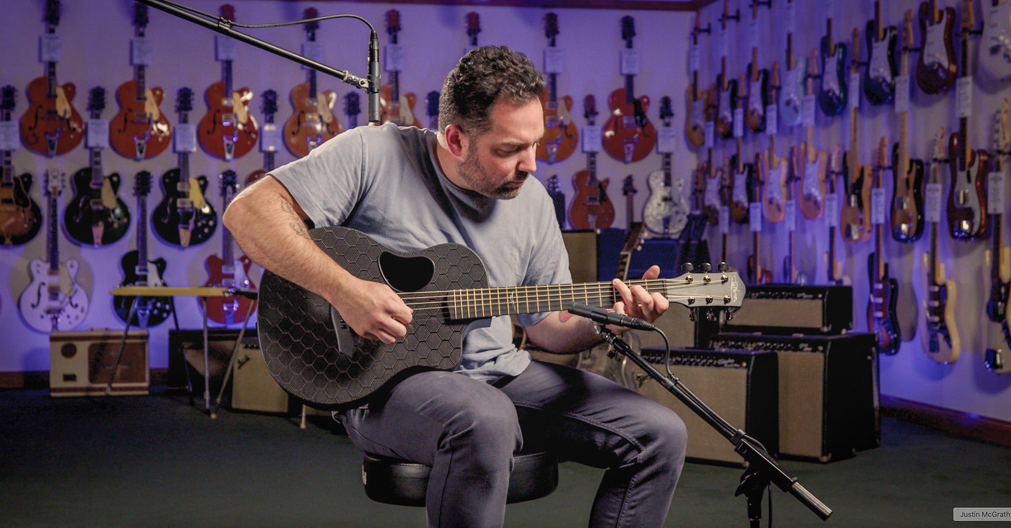 The McPherson Carbon Touring guitar is a ¾-sized travel guitar that delivers a big sound in a small package. Though compact, it blends McPherson’s patented design with modern materials to produce a rich, full-bodied voice. With outstanding volume, warmth, and dynamic range, the Touring is the perfect travel companion yet fully suited for the stage or studio.